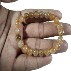 Gemstones Golden Rutile Faceted Starch Elastic Beads Bracelet Beautiful Super Natural Crystal